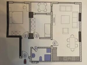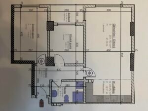Qendrim ditor+Kuzhinë+terasë, 2 dhoma gjumi, 1 Banjo, koridor.