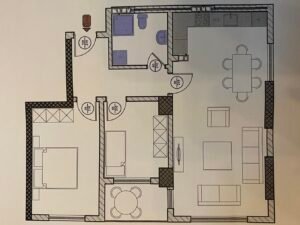 Qendrim ditor+Kuzhinë+terasë, 2 dhoma gjumi, 1 Banjo, koridor.