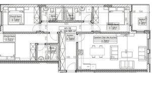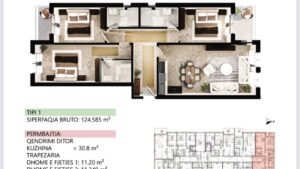 Qendrim ditor+Kuzhinë, 3 dhomë gjumi, 3 Banjo, njëra Banjo në dhomë të gjumit, 1 koridor, 2 terasa. Banesa është në ndertim, investoni në lumturinë e familjes suaj!