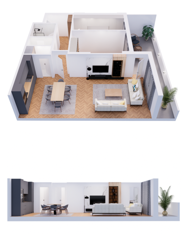 duke ofruar një organizim funksional dhe një terasë që shton vlerë reale në jetesën e përditshme.