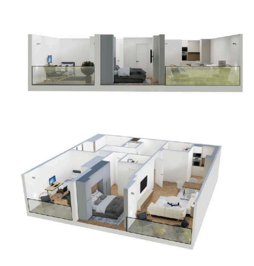 Banesa 5 ofron hapësira të gjera dhe organizim funksional, ideale për familje që kërkojnë rehati dhe privatësi. Dy ballkonet dhe ndarja e qartë mes zonës së ditës dhe dhomave të gjumit e bëjnë këtë banesë shumë të përshtatshme për jetesë afatgjatë.