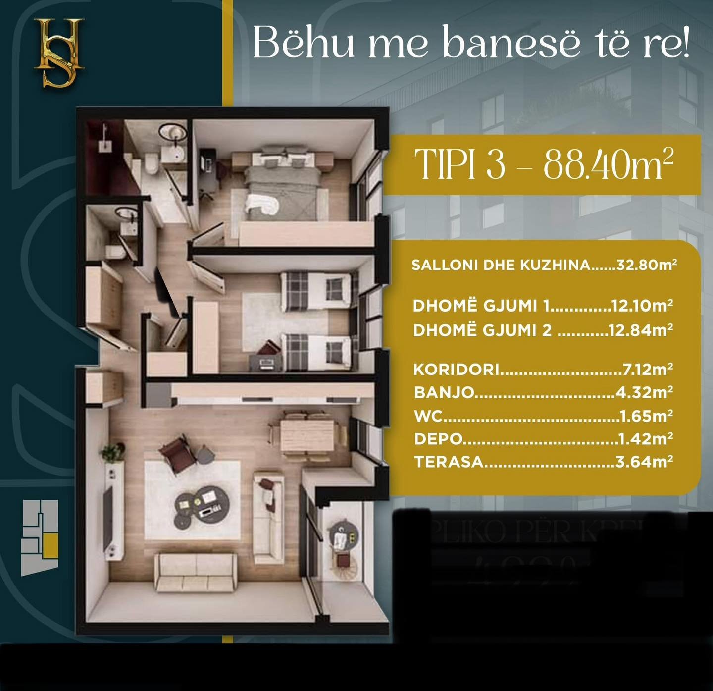 Kjo banesë në Kompleksin “Hillside”, e vendosur në katin e 7-të të Objektit 4,